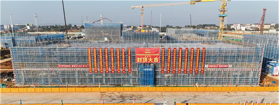 該項目是為響應國家“長江大保護”政策,落實沿江1公里化工企業“關改搬轉”任務,采用國內先進成熟可靠的技術,建設綠色、安全、低碳、智能、可持續的改造升級項目,共計34個單體。自項目開工建設以來,項目部科學組織、精益管理、精心施工,克服連日陰雨造成的諸多困難,順利完成主體結構施工,為接下來二次結構及設備安裝提供了有利條件。此次封頂的變電所是該項目的“電力心臟”,從這里輸出的電能將供應整個項目,發揮電力轉換、電能分配、電量計量等重要作用。